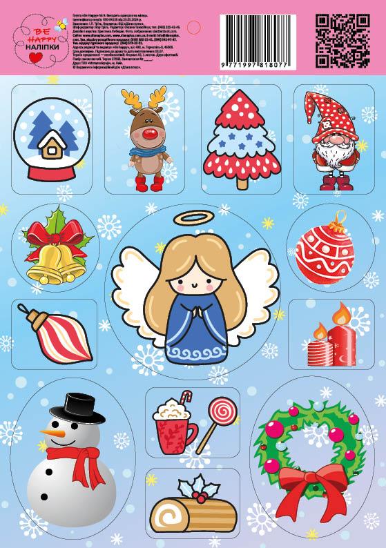 Наліпки « Be Happy ». Узнайте, як наші кольорові наліпки з витисканням « Be Happy » стануть у пригоді малечі, щоби з друзями весело провести час. Ця захоплива гра з наліпками допоможе маленьким розумникам неабияк розвинути моторику та проявити безмежні можливості для розвитку власного креативу. У комплект наліпок входять: - наліпки до Нового Року; - символи Різдва; - найкращі домашні улюбленці; - емоційні смайлики; - види транспортних апаратів та роботів; - національні символи України; - найкращі прикраси для модниць; - картинки про чарівного казкового коня – однорога. Формат: А5, 1 сторінка.